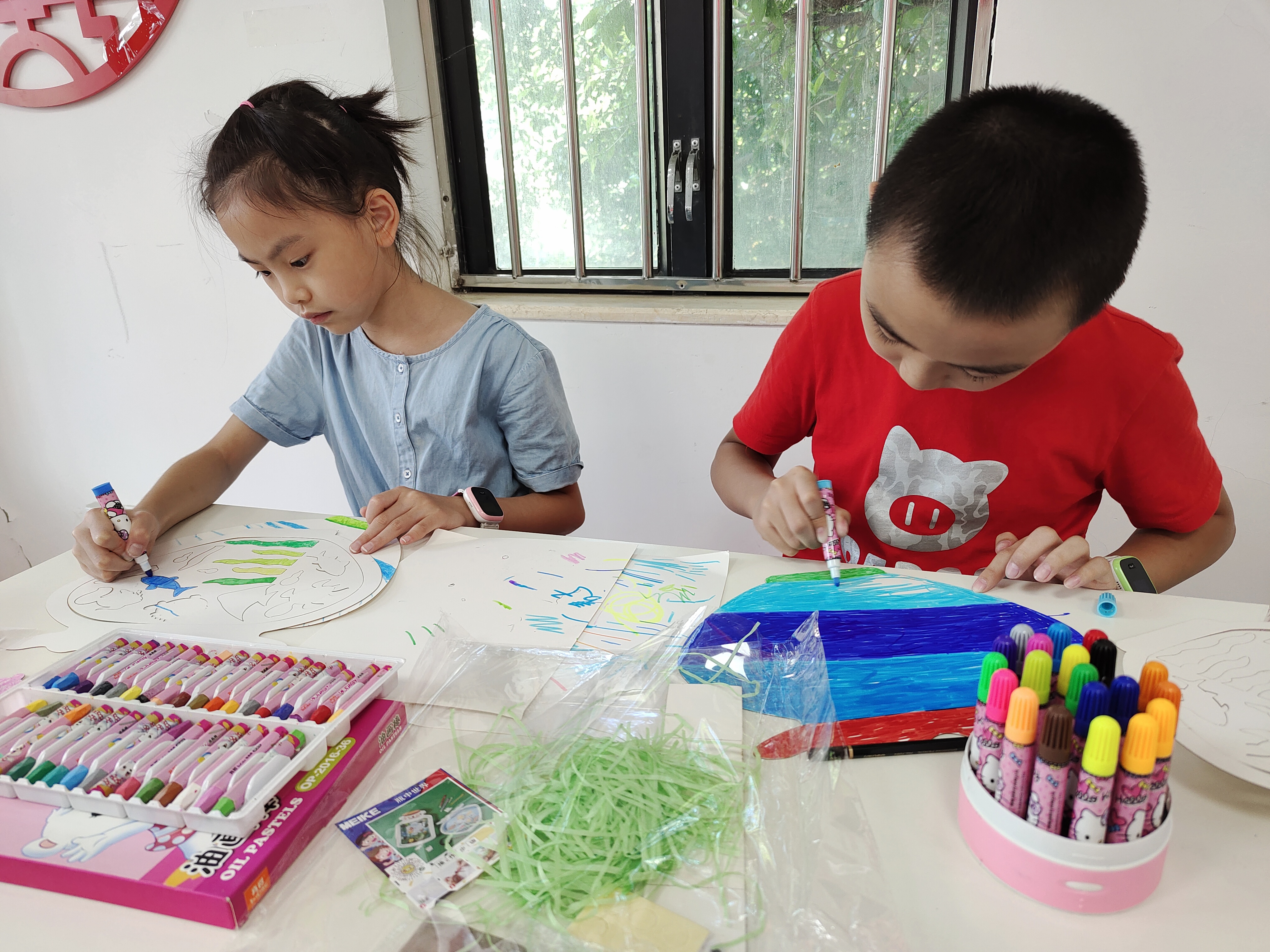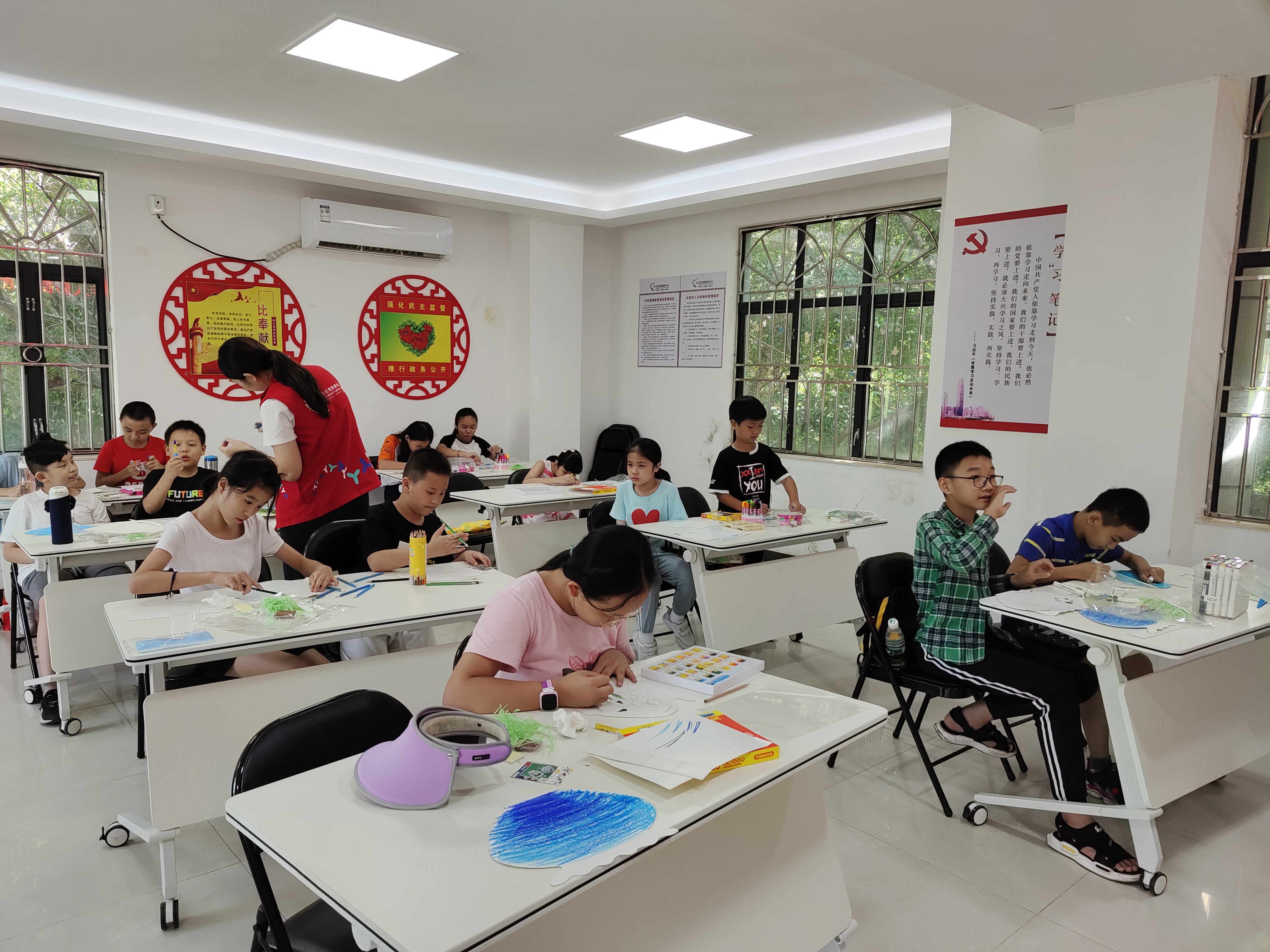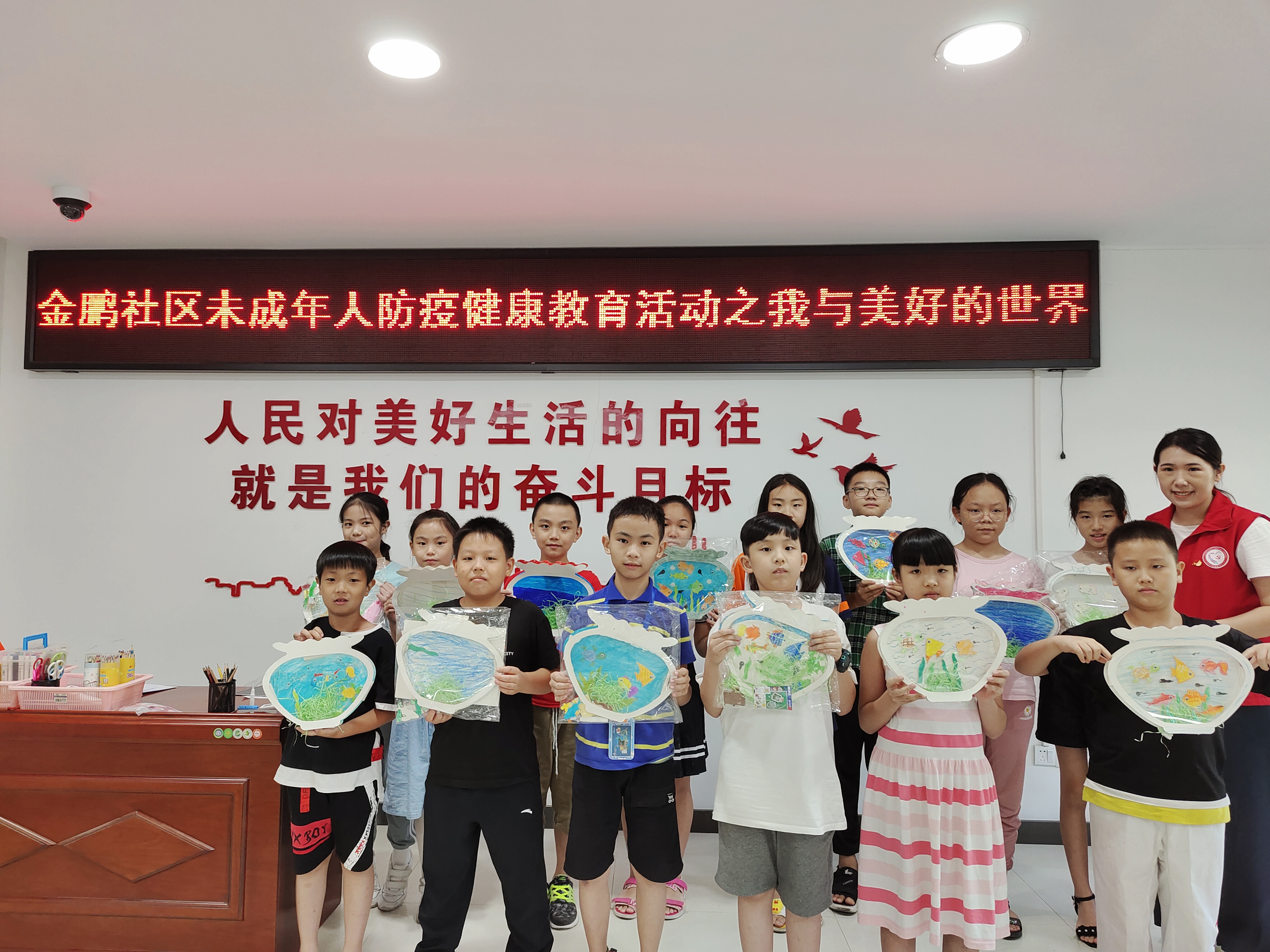 2020年7月22日下午,在金鹏社区党群服务中心三楼活动室中开展了主题为“我与美好的世界”的金鹏社区未成年人防疫健康教育手工活动。活动主要让社区儿童在手工制作的过程中,通过绘画、想象、延伸出不同的创意作品。在培养社区青少年儿童的创造力的同时,舒缓上半年因疫情动荡不定的紧张心理。