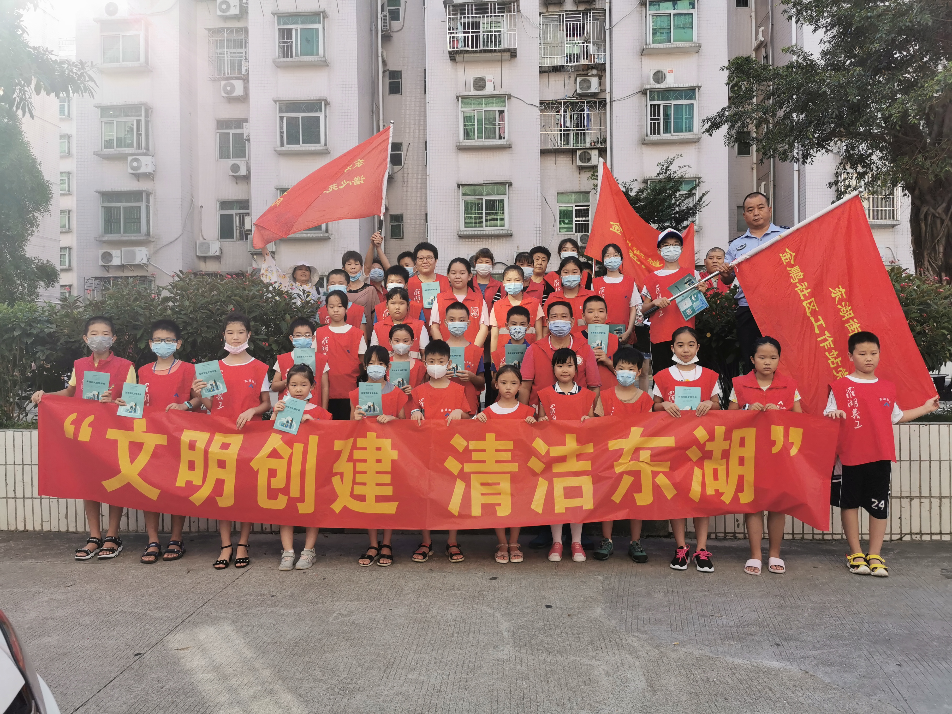 为进一步推进文明城市创建工作,迎接文明城市指数测评,8月7下午金鹏社区再现红马甲,开展“文明创建、清洁东湖”主题党日卫生大扫除活动,强助攻创文工作。本次活动在金鹏社区党委的统筹安排下,由社区两个党支部党员、社区党群服务中心工作人员、社区志愿者等协同参与,大家穿着“红马甲”,让党旗高高飘扬在创文的一线,形成了一道靓丽的风景线。