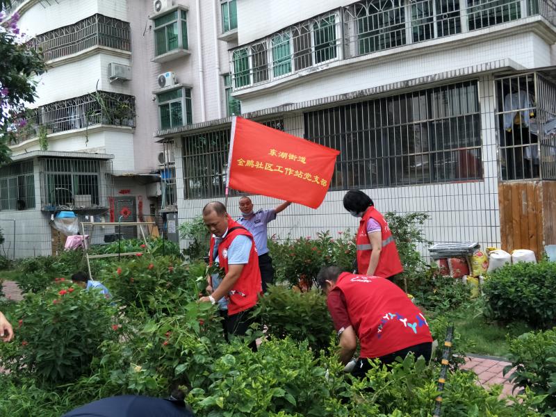 为进一步做好创建第六届全国文明城市工作,迎接省文明委的实地调查测评,金鹏社区积极响应上级领导号召,于8月11日下午继续开展“文明创建、清洁东湖”主题党日卫生大清扫活动。第一书记张翠红、社区党委书记赖玉军高度重视本次活动,亲自带队、亲自落实,全体参加活动人员穿着“红马甲”,佩戴党徽,亮出身份,大家带着铲子、喷壶、小钢刷等工具清理各个卫生死角,此次活动进一步强化了党员的党性意识和为民服务意识,同时也全面提升了城市文明程度和居民文明素质。