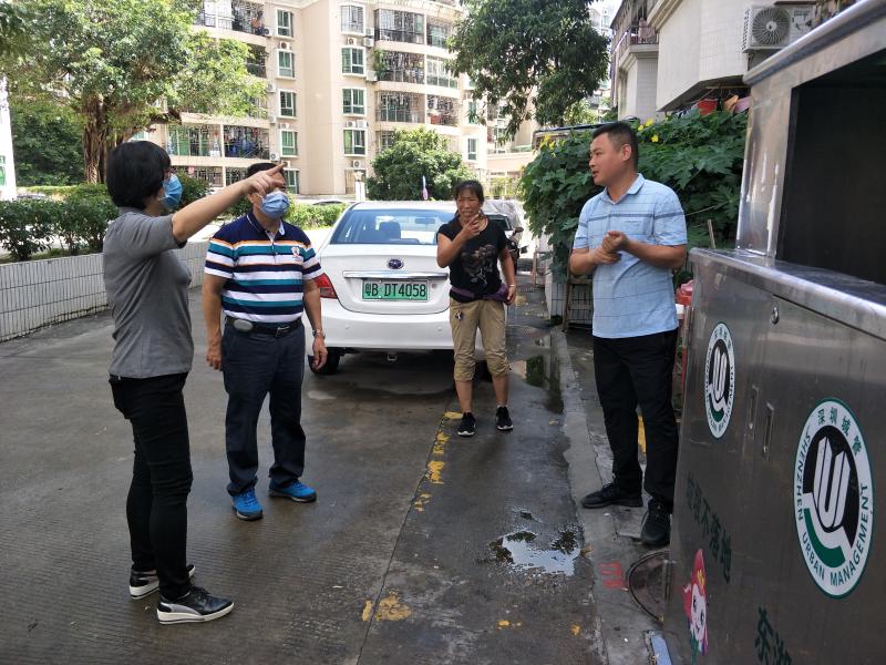 8月中旬金鹏社区第一书记张翠红深入谱心苑小区指导创文工作。为全面迎检冲刺,第一书记张翠红带领金鹏社区全体工作人员全力以赴,实地巡查谱心苑小区检查环境卫生、公益广告、创文宣传等落实情况。上下齐心协力,确保工作落实,巡查期间发现自行车摆放不规范,垃圾箱周边有残余垃圾等动态问题,并及时整改完善,张翠红提出我们要严格按照创文标准和要求,加大环境卫生整治力度,关键时刻不掉链子,以我们最好的状态向检查团队展现我们深圳崭新面貌。