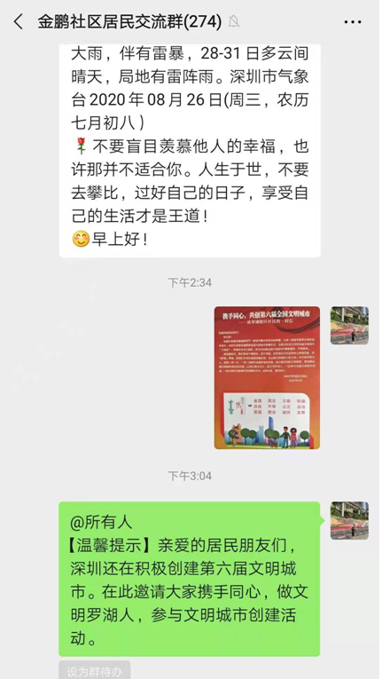 2、在居民群给居民一封信呼吁大家共同参与创文。