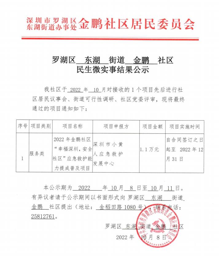 罗湖区东湖街道金鹏社区民生微实事结果公示