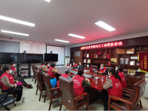 在新春佳节来临之际,为表达社区党委对义务巡逻队的春节祝福,金鹏社区党委在二楼会议室开展关爱慰问义务巡逻队活动。社区第一书记张翠红、社区党委书记邬国雄、社区工作人员以及义务巡逻队员等共同参加了此次活动。