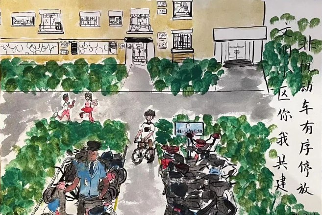 ⭕活动主题:金鹏社区“我是小小画家”电动车有序停放主题创意绘画活动