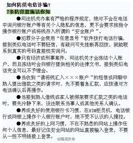 【7条防范措施可应对电信诈骗】生活中,很多人都收到过诈骗短信,绝大部分不会上当,但总有个别会中招。