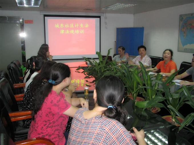 2014年7月9日,为进一步提高基层人口计生工作人员关于计生法律法规知识,转变计生队伍工作作风,提高工作效率,城东社区举行2014年计生法律法规培训活动,城东社区全体计生工作人员参加此次培训。通过此次培训,进一步明确了计生专干工作职责权限,规范了人口和计划生育服务和管理行为,更好依据计生法律法规更好的为群众做好计生服务。