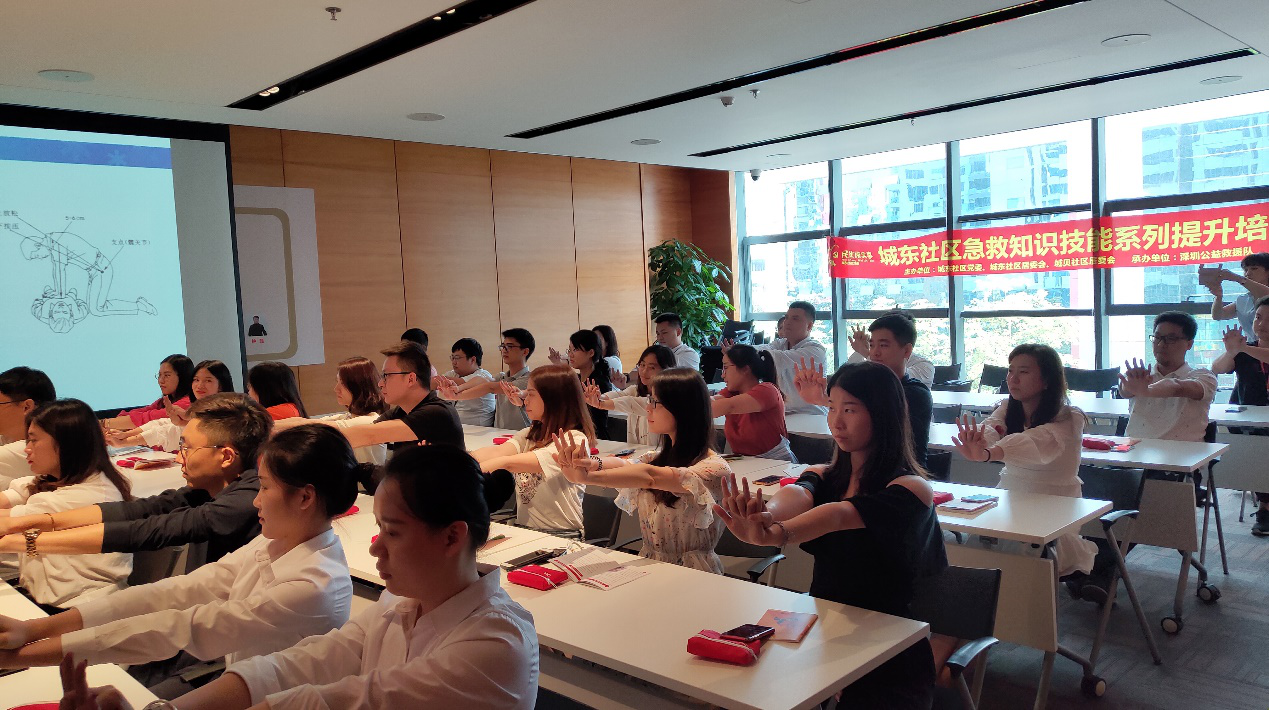 为了提升社区对突发意外的应急处置能力、提高辖区居民的急救普及率,构建安全社区。2019年9月18日,由城东社区党委、城东社区居委会、城贝社区居委会主办,深圳公益救援队承办的民生微实事“城东社区应急知识技能提升培训”项目第一节课在广田大厦4楼迎春厅开展。
