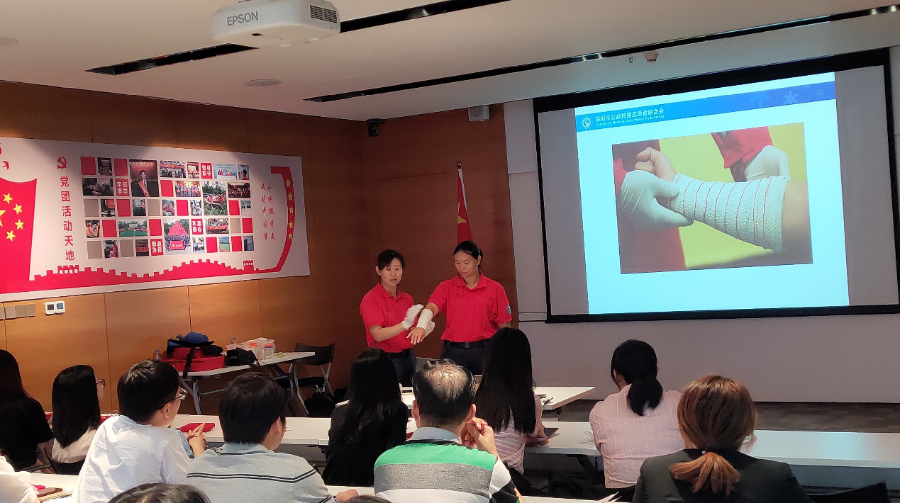 本期培训由深圳市公益救援志愿者联合会的专业讲师陈媛进行授课。课程内容包含了徒手心肺复苏及AED的使用、气道梗阻的处置、止血包扎等内容