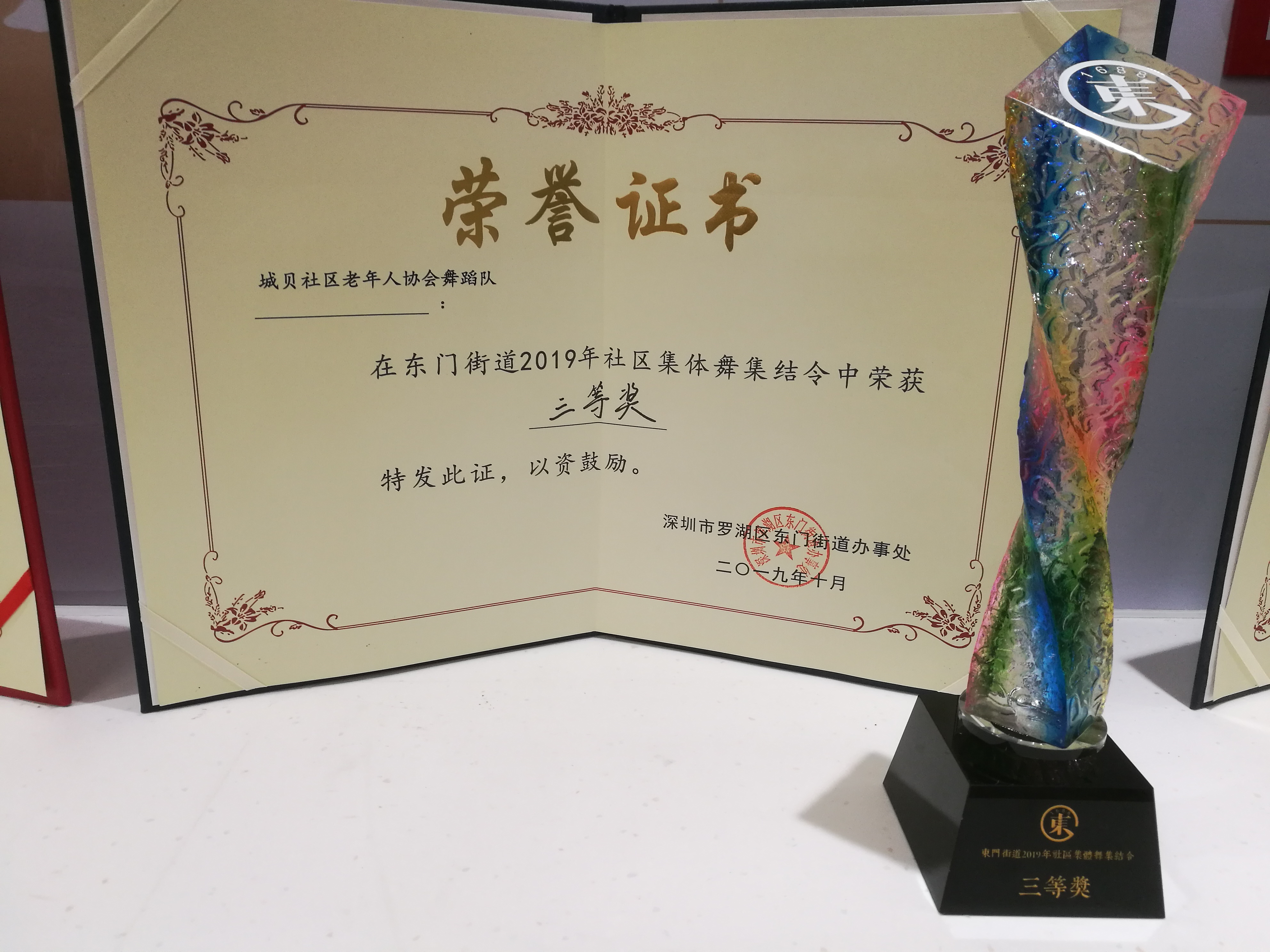 2019年10月19日,城贝社区老年人协会参加东门街道2019年社区集体舞集结令中荣获三等奖。