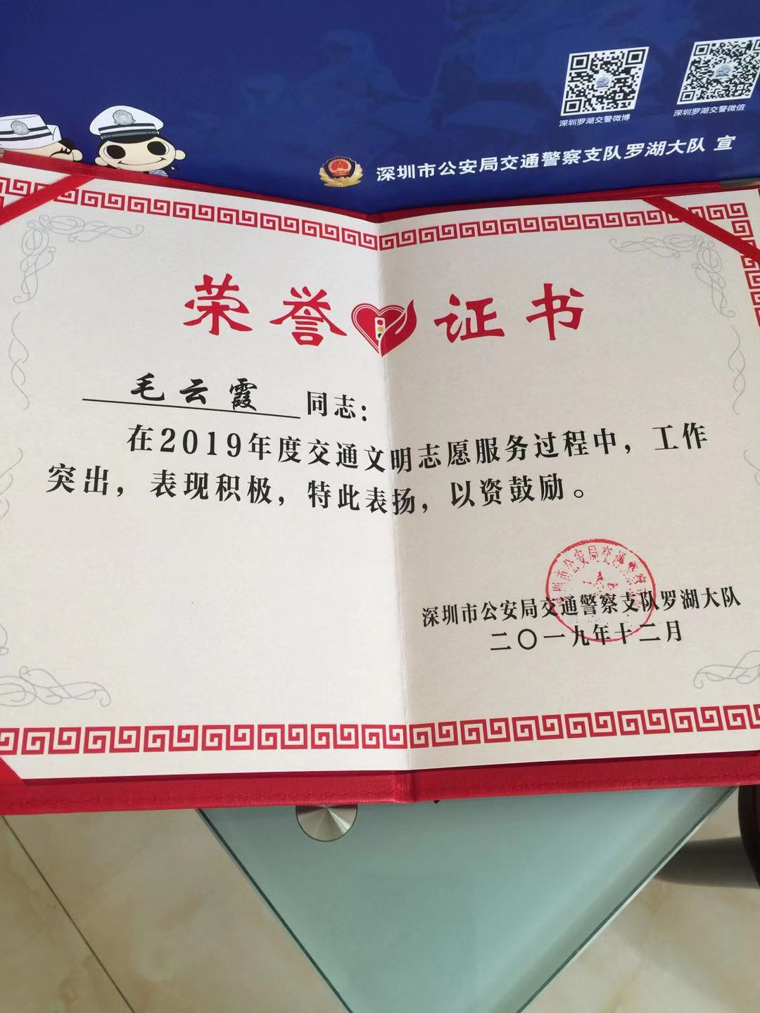 此外,现场还对在此次深圳创建文明城市工作中,交通文明志愿服务上,有杰出成绩的志愿者进行表彰,并授予“优秀志愿者”称号。其中,城东社区志愿者毛云霞同志获此殊荣,她在志愿服务过程中,积极发挥志愿者在文明交通中的示范引领作用,为创建和谐、安全的道路交通环境做出表率,值得我们每一位志愿者学习!