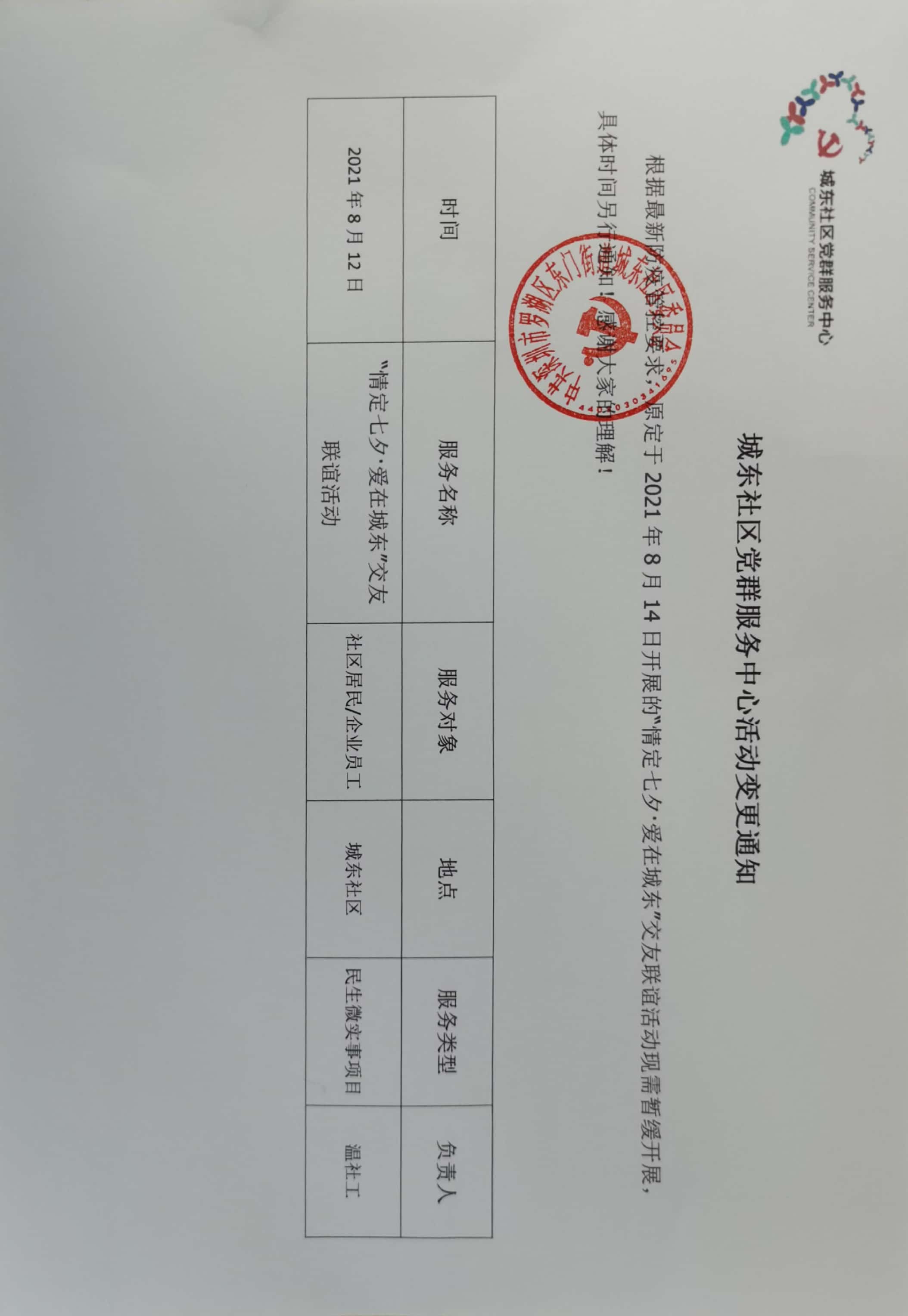 根据最新防疫管控要求,罗湖区东门街道民生微实事项目-“情定七夕·爱在城东”交友联谊活动现需暂缓开展,具体时间另行通知!感谢大家的理解!