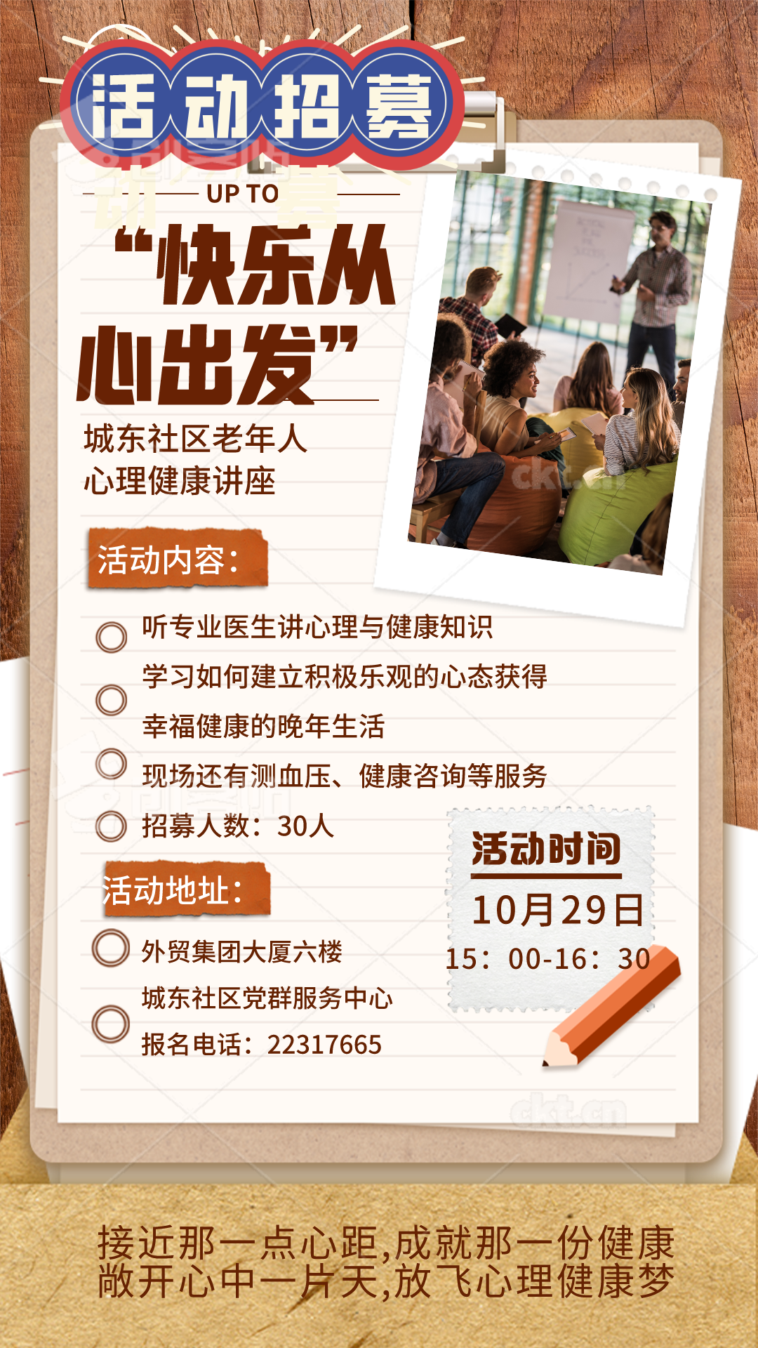 “快乐从心出发”城东社区老年人心理健康讲座招募啦!