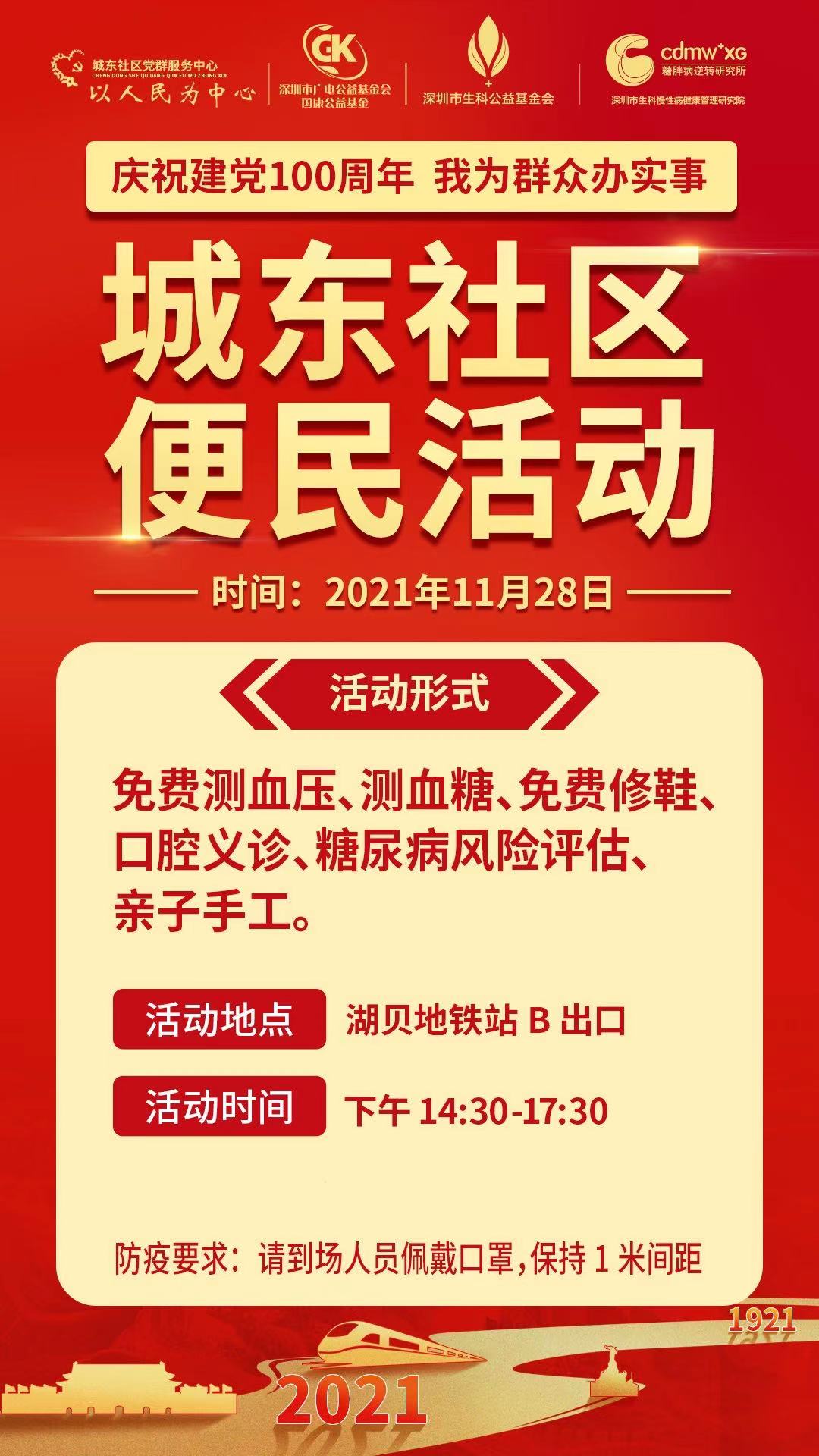 活动内容:为居民提供测血压测血糖、修鞋、口腔义诊、糖尿病风险评估、亲子手工项目等服务