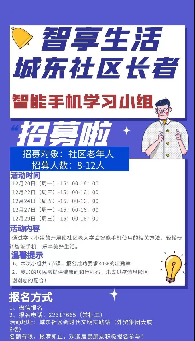 【招募啦】“智享生活”城东社区长者智能手机学习小组