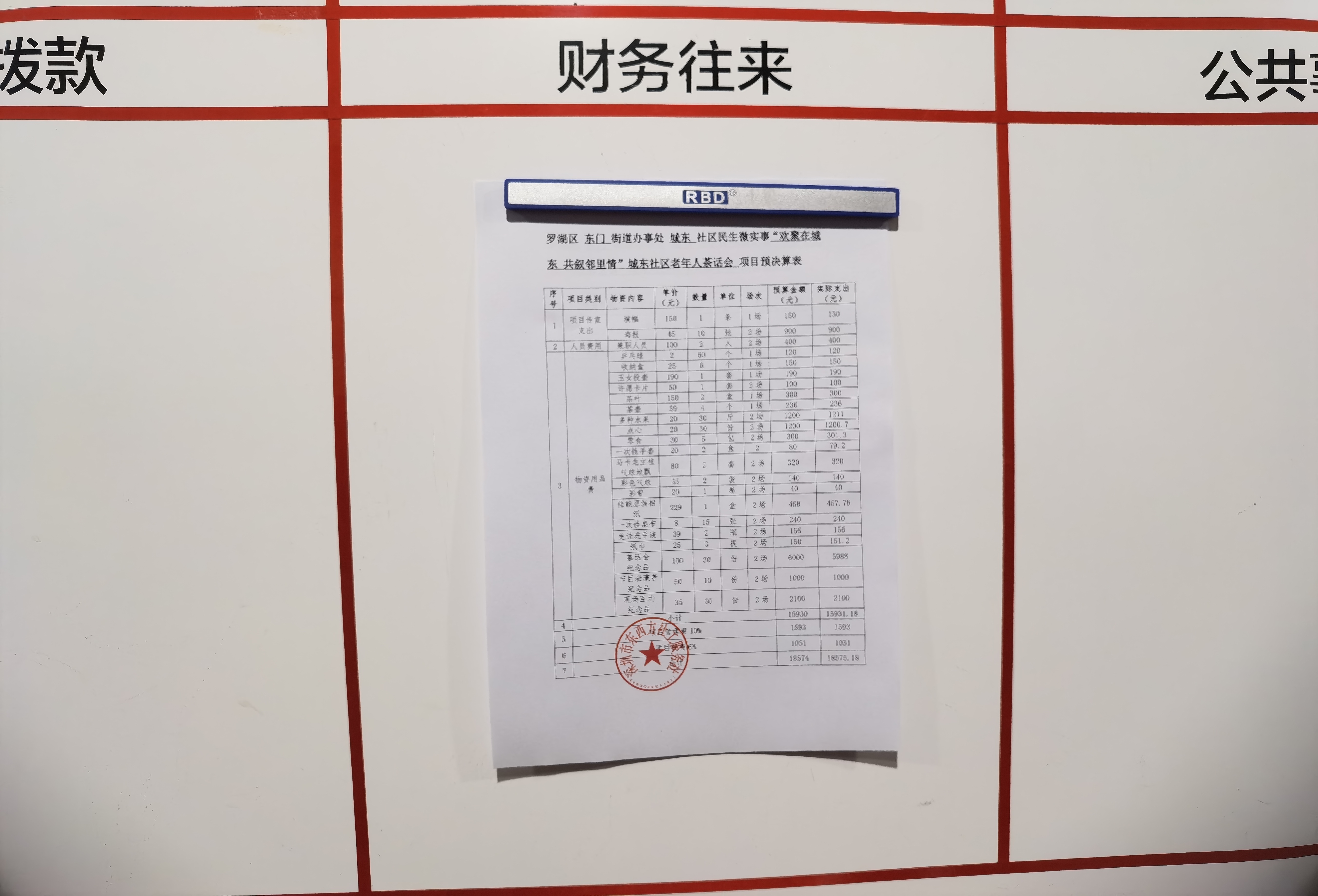 “欢聚在城东 共叙邻里情”城东社区老年人茶话会项目预决算表