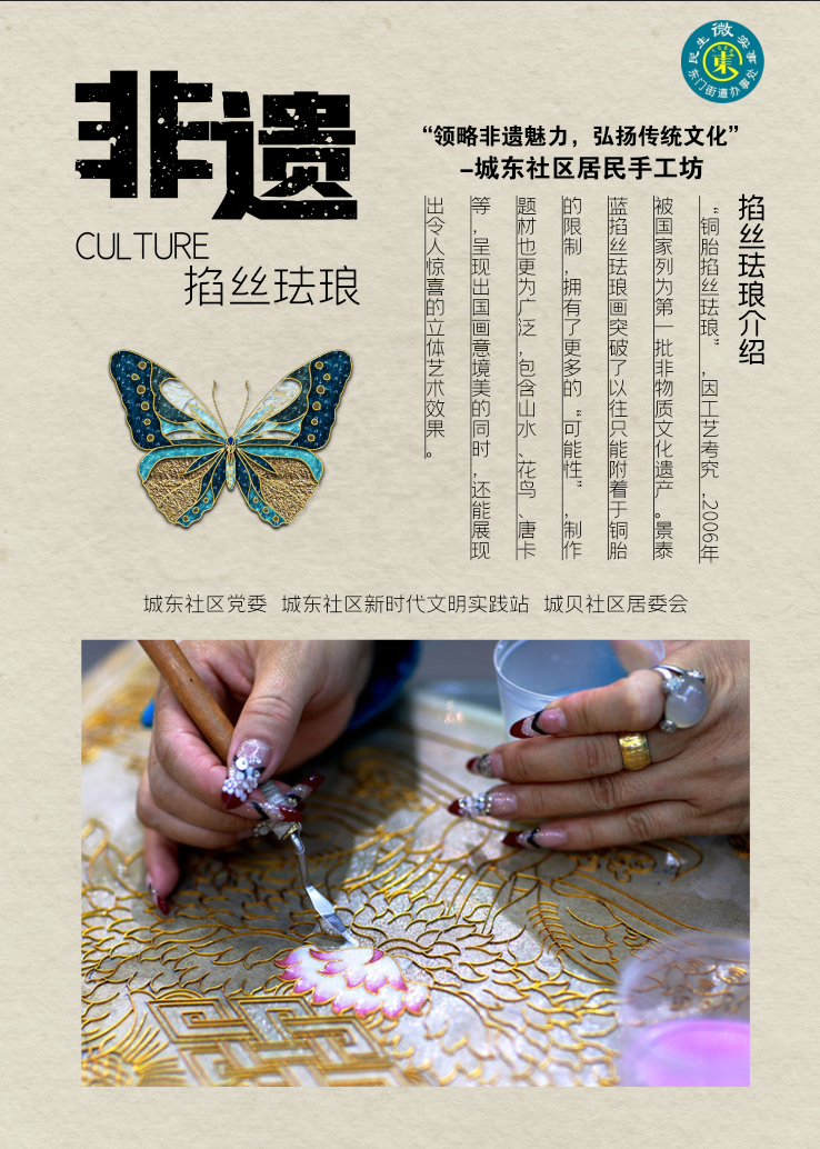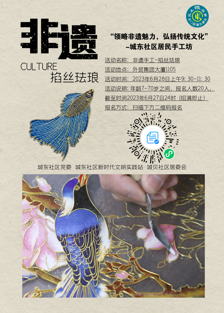 活动主题:“铜胎掐丝琅,因工艺考究,2006年被国家列为第一批非物质文化遗产。景泰