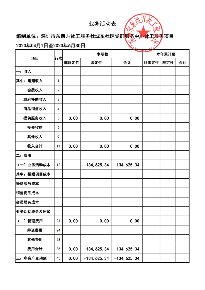 城东社区党群服务中心2023年第二季度财务公示