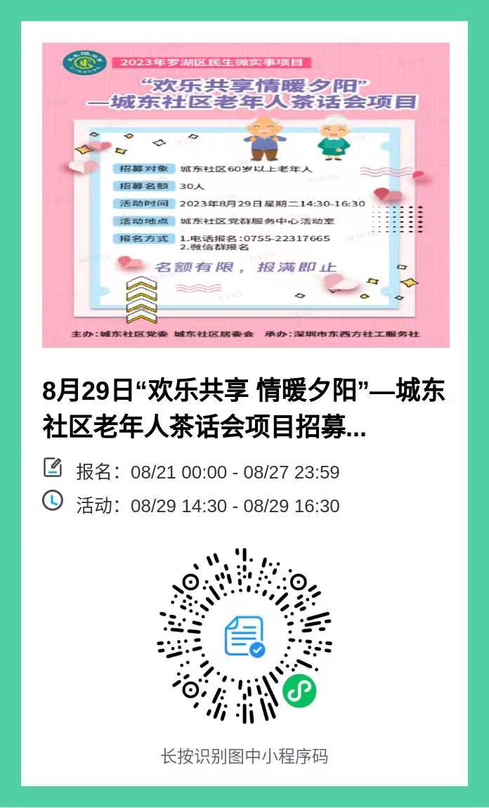 2023年罗湖区民生微实事项目 “欢乐共享 情暖夕阳”—城东社区老年人茶话会项目