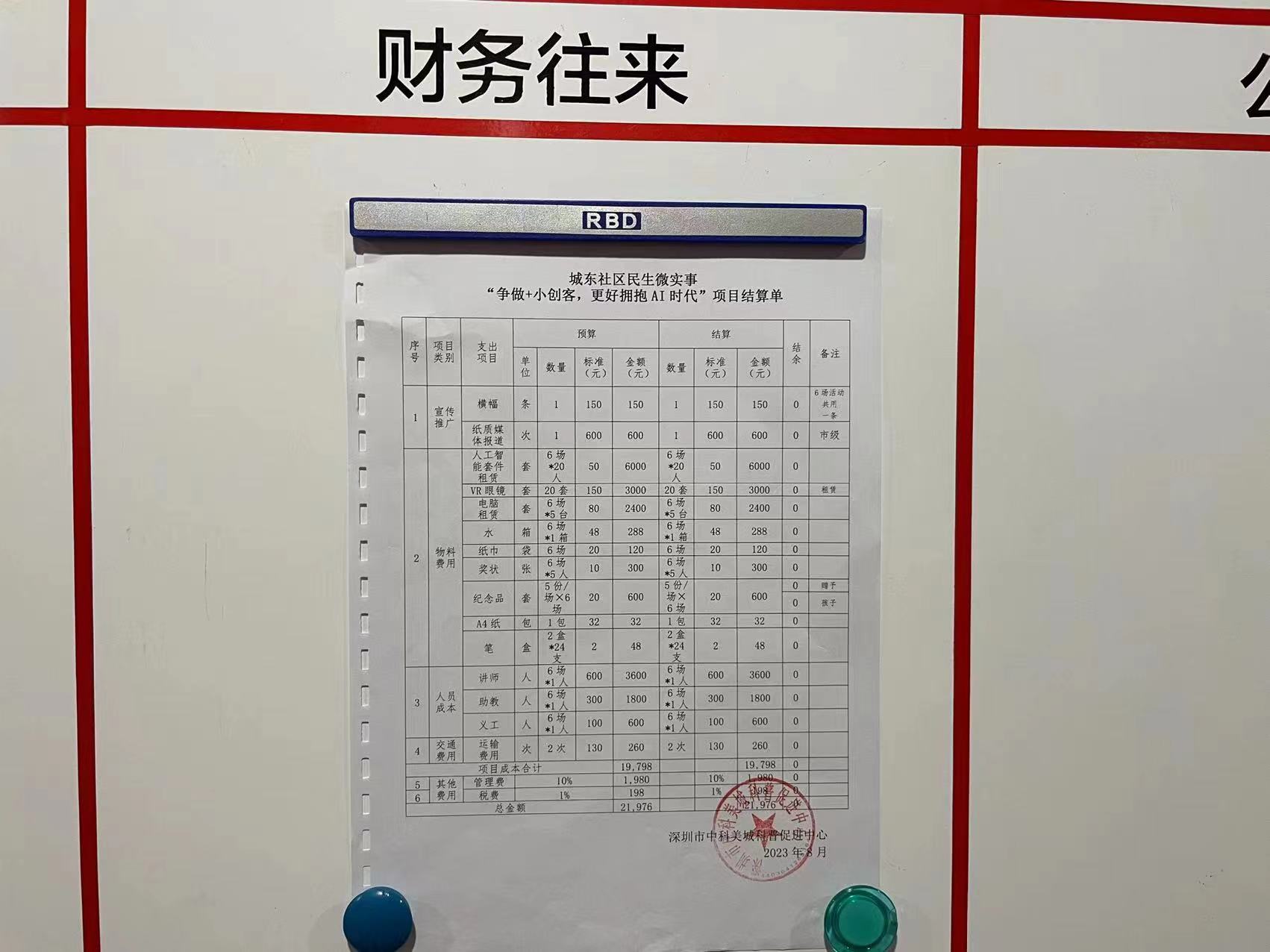 城东社区民生微实事 “争做+小创客,更好拥抱AI时代”项目预结算表