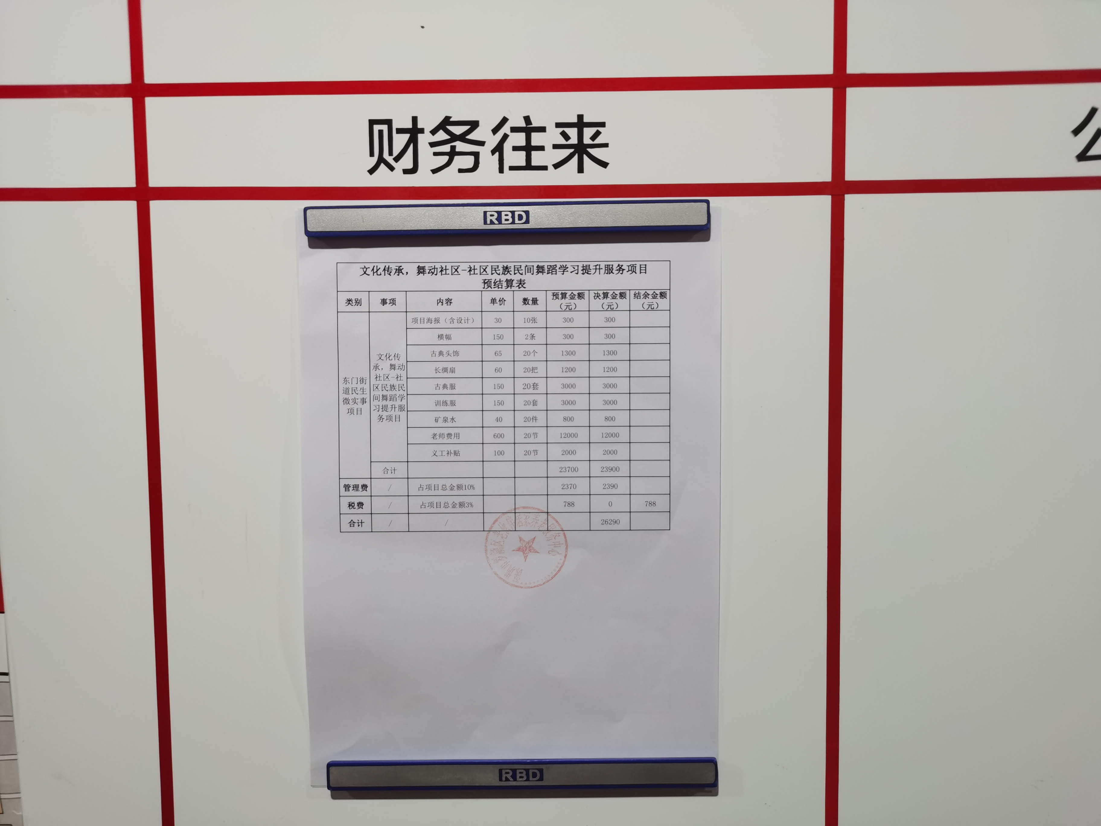东门街道城东社区民生微实事 文化传承,舞动社区-社区民族民间舞蹈学习提升服务项目财务公示