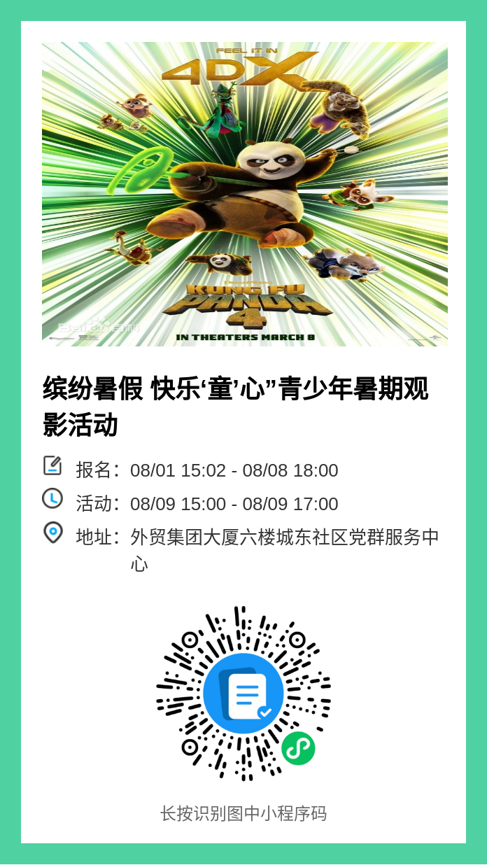 活动对象:社区青少年儿童(六岁以下儿童请在家长陪同下观影)