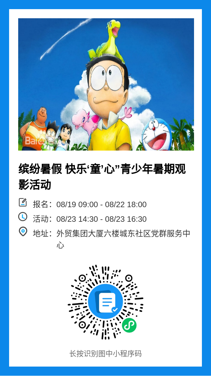 【观影招募】缤纷暑假 快乐‘童’心”青少年暑期观影活动