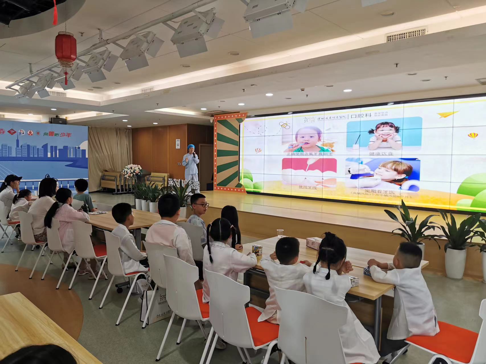 活动开始前他们都领取到了自己的小医生制服,穿上“白大褂”。随后谢医生带领大家进入爱牙课堂,专业牙医通过生动有趣的ppt讲解,让参与者们了解牙齿的结构、龋齿的形成及如何预防等。孩子们听得津津有味,不时举手提问,现场气氛十分活跃。