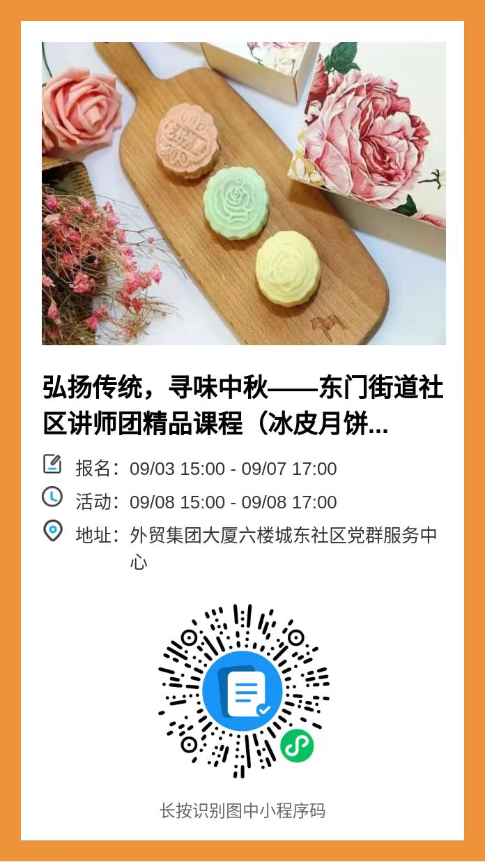 【活动招募】弘扬传统,寻味中秋——东门街道社区讲师团精品课程(冰皮月饼DIY工作坊)