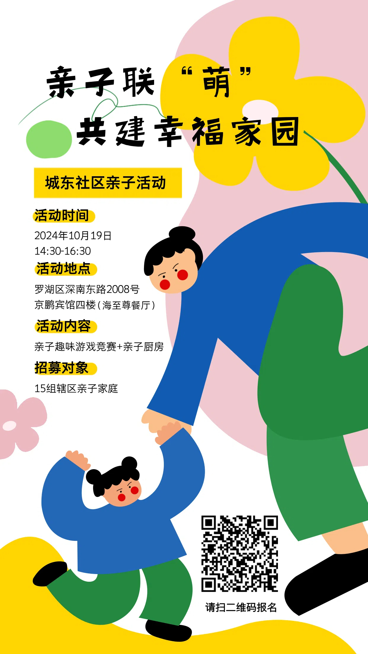 活动内容:城东社区即将举办一场别开生面的亲子活动 —— 亲子趣味游戏竞赛与亲子厨房相结合的欢乐盛宴!欢迎大家一同参与!