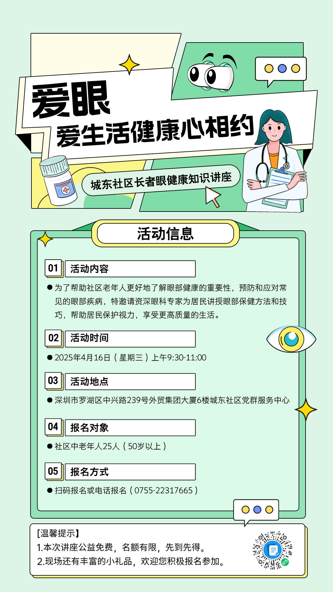 “爱眼爱生活健康心相约”城东社区长者眼健康知识讲座招募