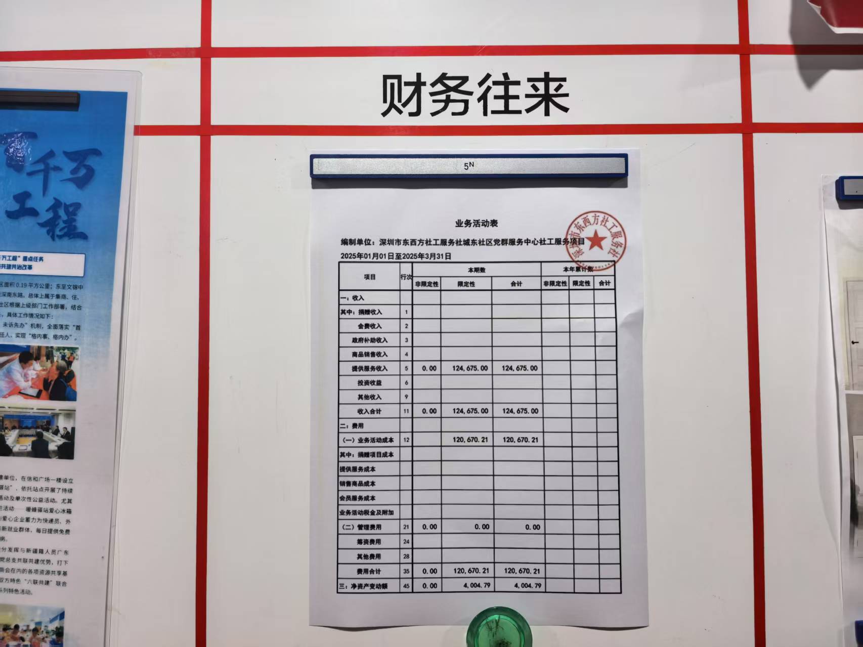 城东社区党群服务中心2025年第一季度财务公示