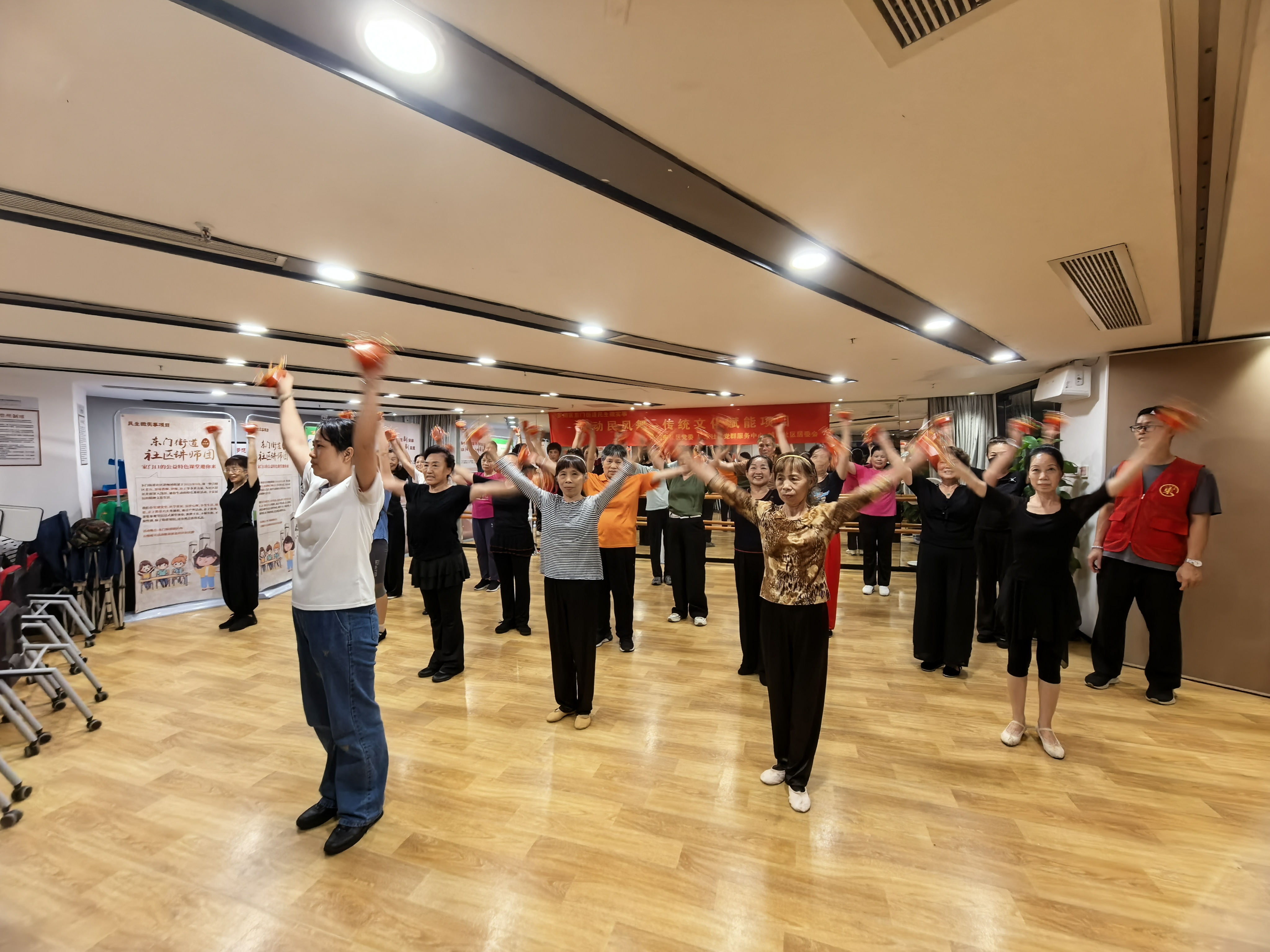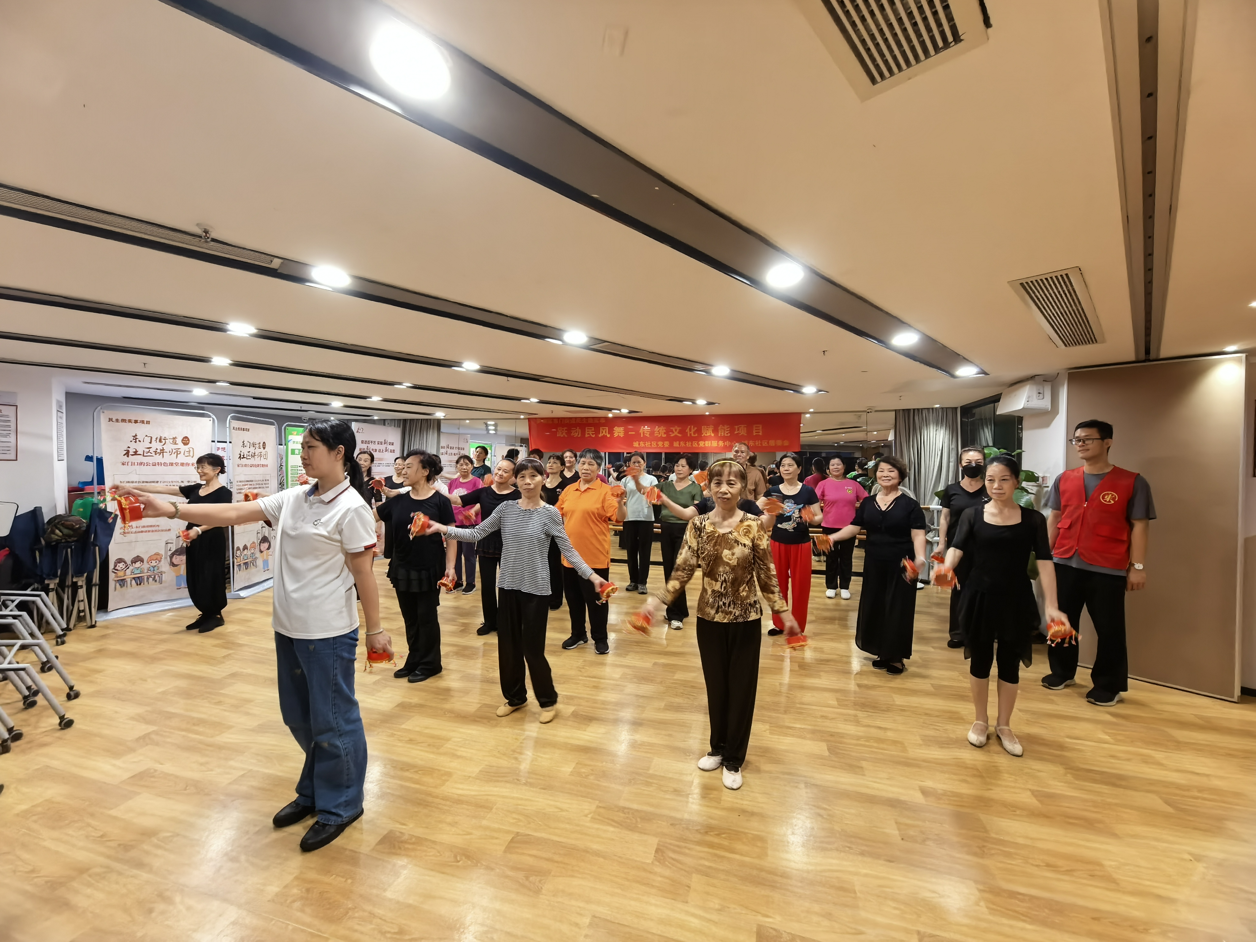 为传承民族传统文化、丰富居民精神文化生活,2025年5月29日晚由城东社区党委,城东社区党群服务中心,城东居委会主办,深圳市方鼎社会工作发展中心承办的民生微实事:跃动民风舞-传统文化赋能项目,首节彝族烟盒舞课就吸引了20多位社区居民热情参与,在非遗韵律中感受民族艺术的独特魅力。