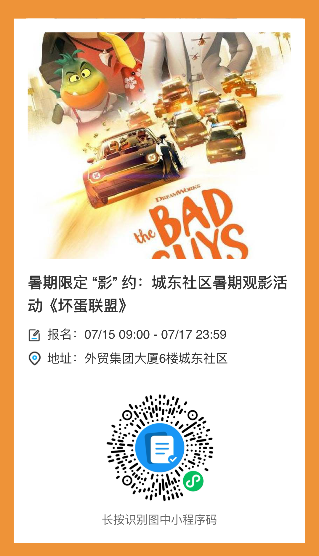 观影招募】暑期限定 “影” 约:城东社区暑期观影活动