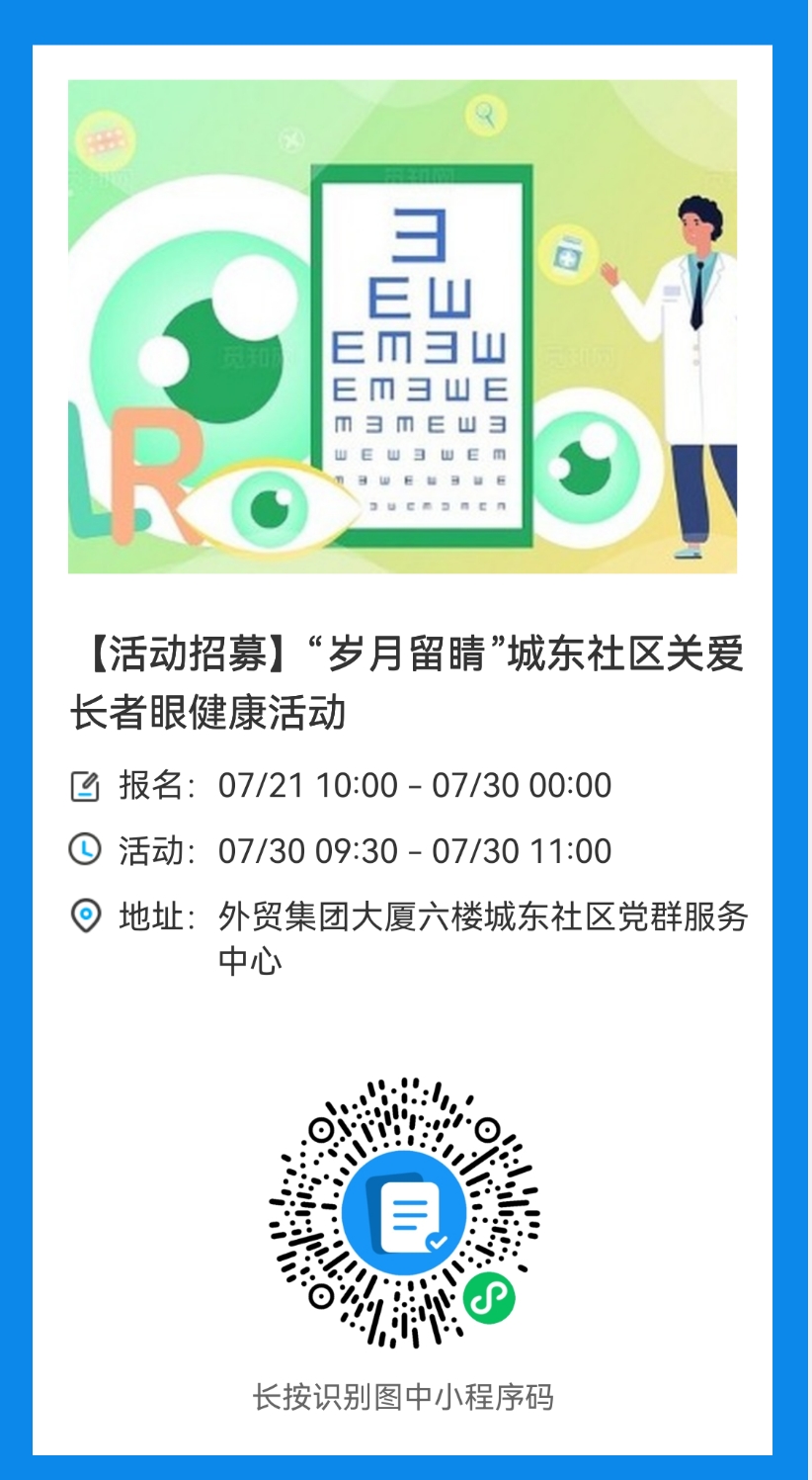 “岁月留睛”城东社区关爱长者眼健康活动招募