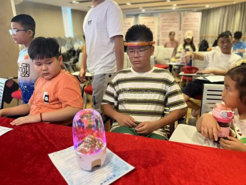 2025 年 7 月 17 日星期四下午,城东社区外贸集团大厦六楼热闹非凡,“智联未来・脑机探索营”AI 智趣工作坊在此盛大举行,20 位青少年齐聚一堂,共同开启一场别开生面的科技之旅。