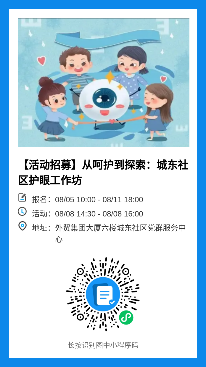 罗湖家园网讯:活动招募:从呵护到探索:城东社区护眼工作坊