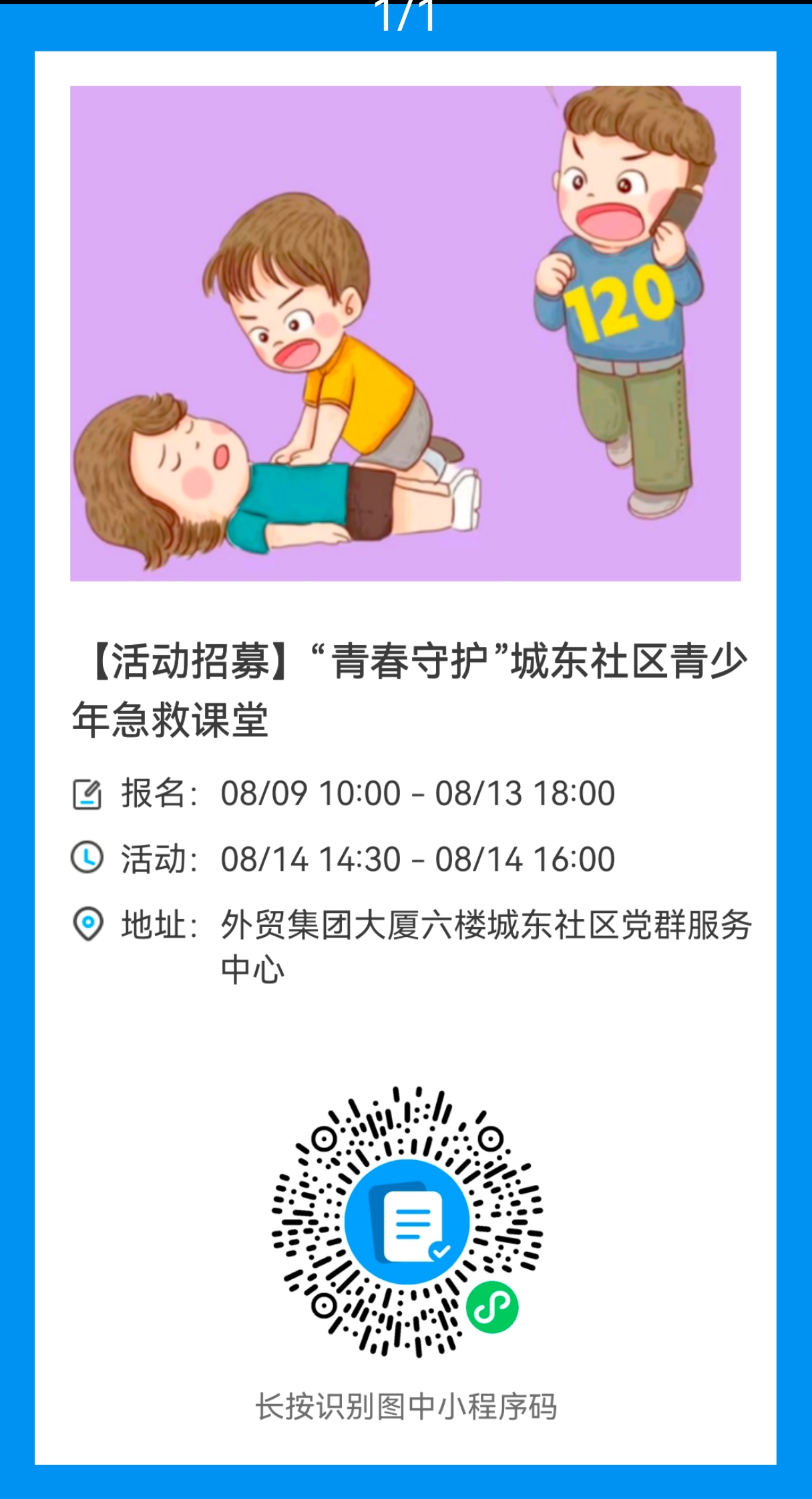 【活动招募】“青春守护”城东社区青少年急救课堂