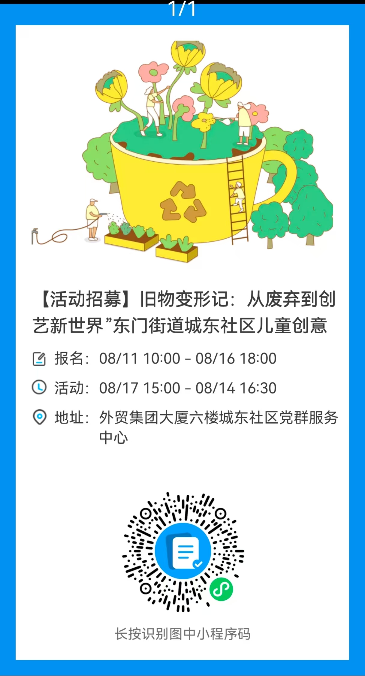【活动招募】旧物变形记:从废弃到创艺新世界”东门街道城东社区儿童创意课堂