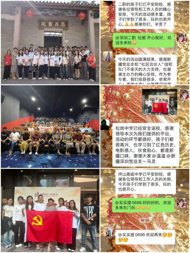 罗湖家园网讯:城东社区联合新疆籍人员深圳市党总支,组织来自深圳大学、深圳职业技术大学、坪山高级中学、深圳市第二职业技术学院和松岗中学的35名新疆籍在深学子开展了为期一天的“民族团结一家亲”东门红色研学之旅活动。本次活动,社区积极撬动社会资源,得到“社区合伙人”——信和东门不夜天、万达影城、全境方舟东门店的大力支持,链接公益助学资金6000元,为活动提供了物资、宣传物料及新疆特色午餐、免费观影等服务。