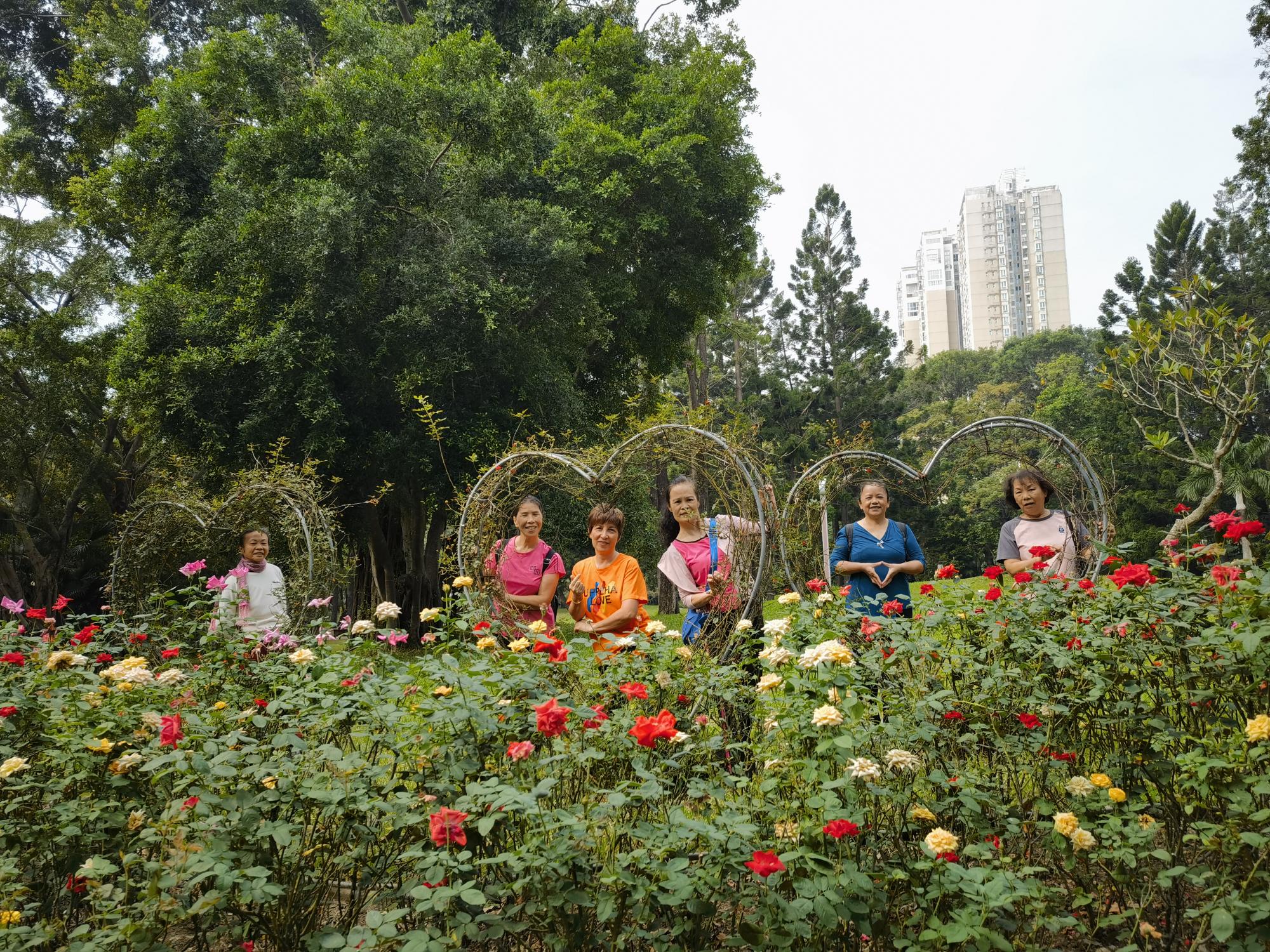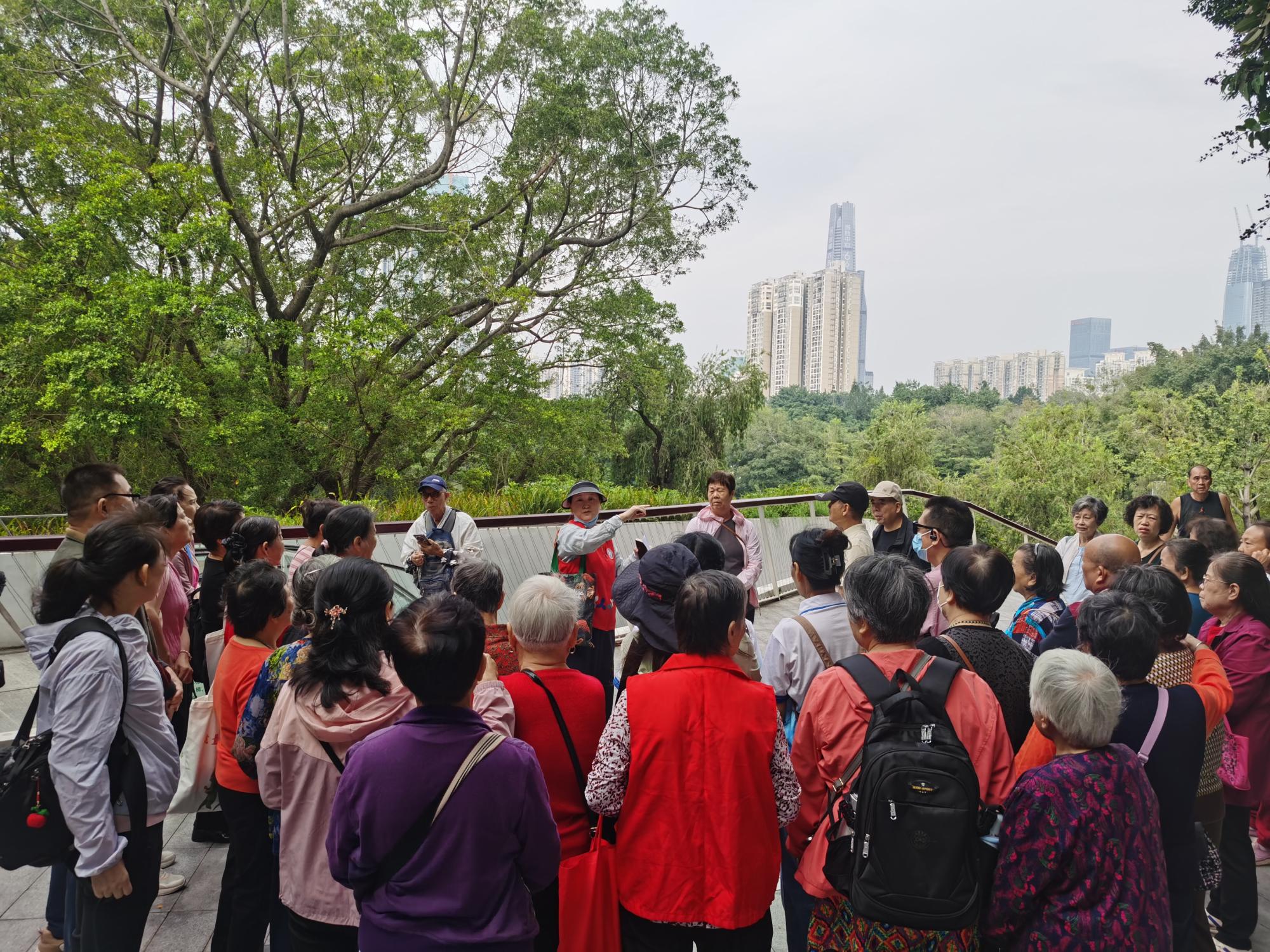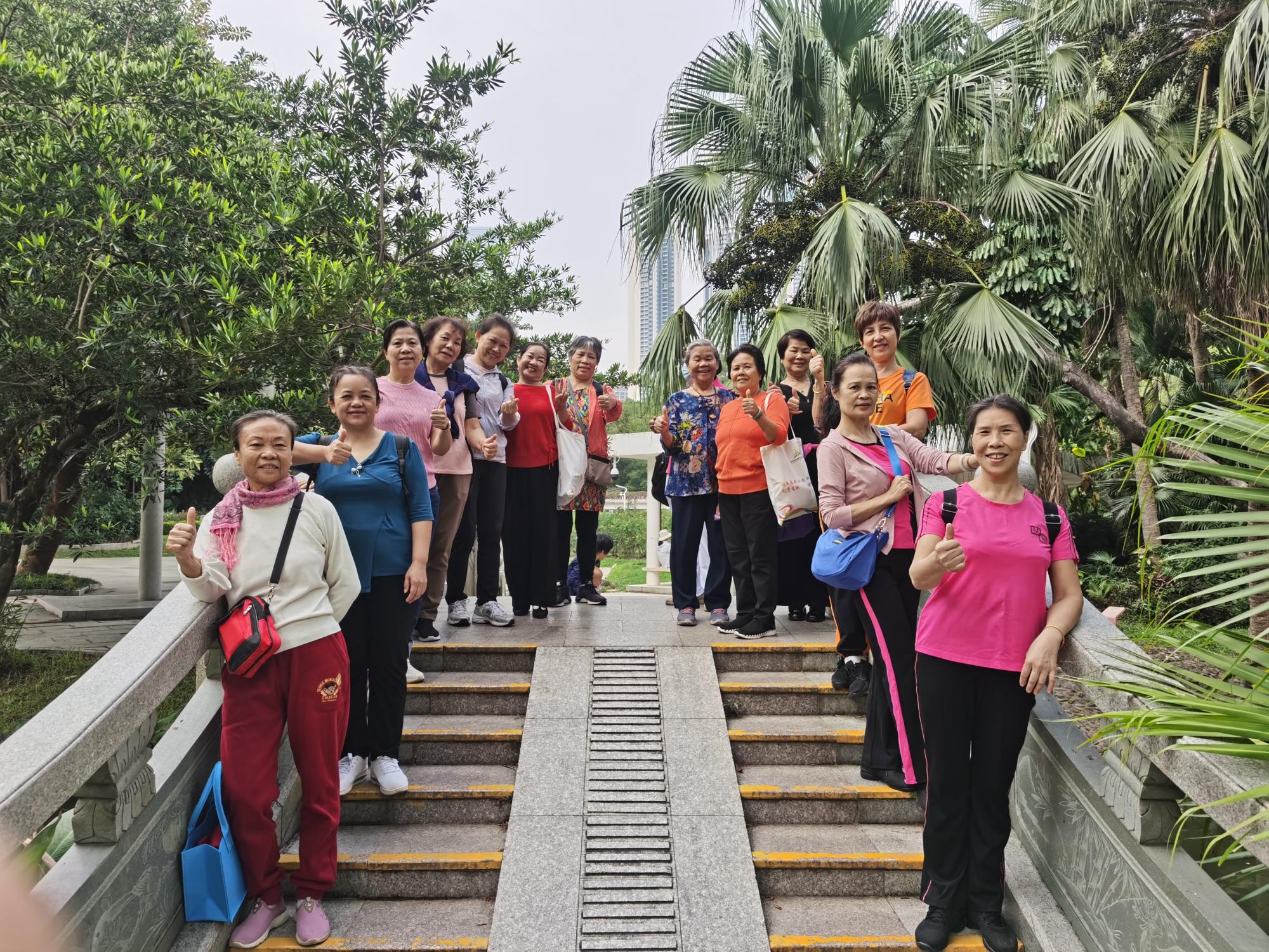 随后,游园踏秋环节开启。老人们三五成群,漫步在人民公园的美景中,呼吸着清新的空气,欣赏着秋日的斑斓景致。大家纷纷拿出手机拍照留念,记录下这美好的瞬间,社工还鼓励大家将照片分享到活动群,让大家感受更多快乐。10:20分,老人们准时在羽毛球平台集合,为接下来的活动做好准备。