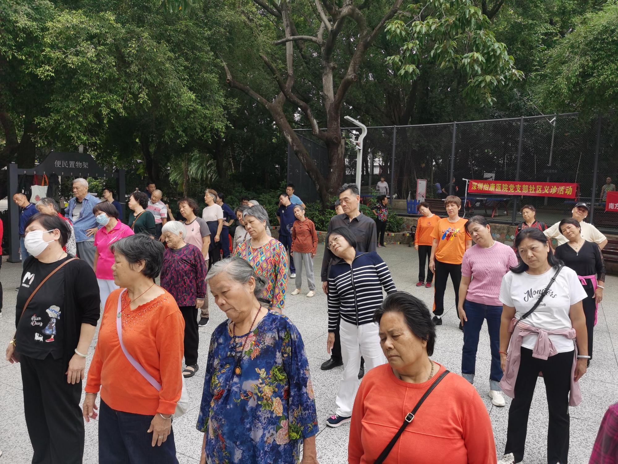 在健身互动环节,深圳怡康医院的郭医生,为大家带来颈肩腰腿保健知识讲解。郭医生结合老年人常见的身体问题,详细介绍了日常保健的方法和注意事项,并亲自带领大家做起了颈肩腰腿保健操。老人们跟着郭医生的节奏,认真地拉伸身体肌肉、活动关节,动作整齐划一,充分展现了积极健康的精神风貌。