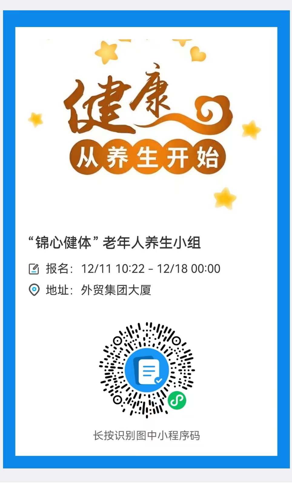 想知道怎么吃更营养?想学习简单有效的健身动作?想结识志同道合的老友?快来加入我们的 “锦心健体” 老年人养生小组吧!