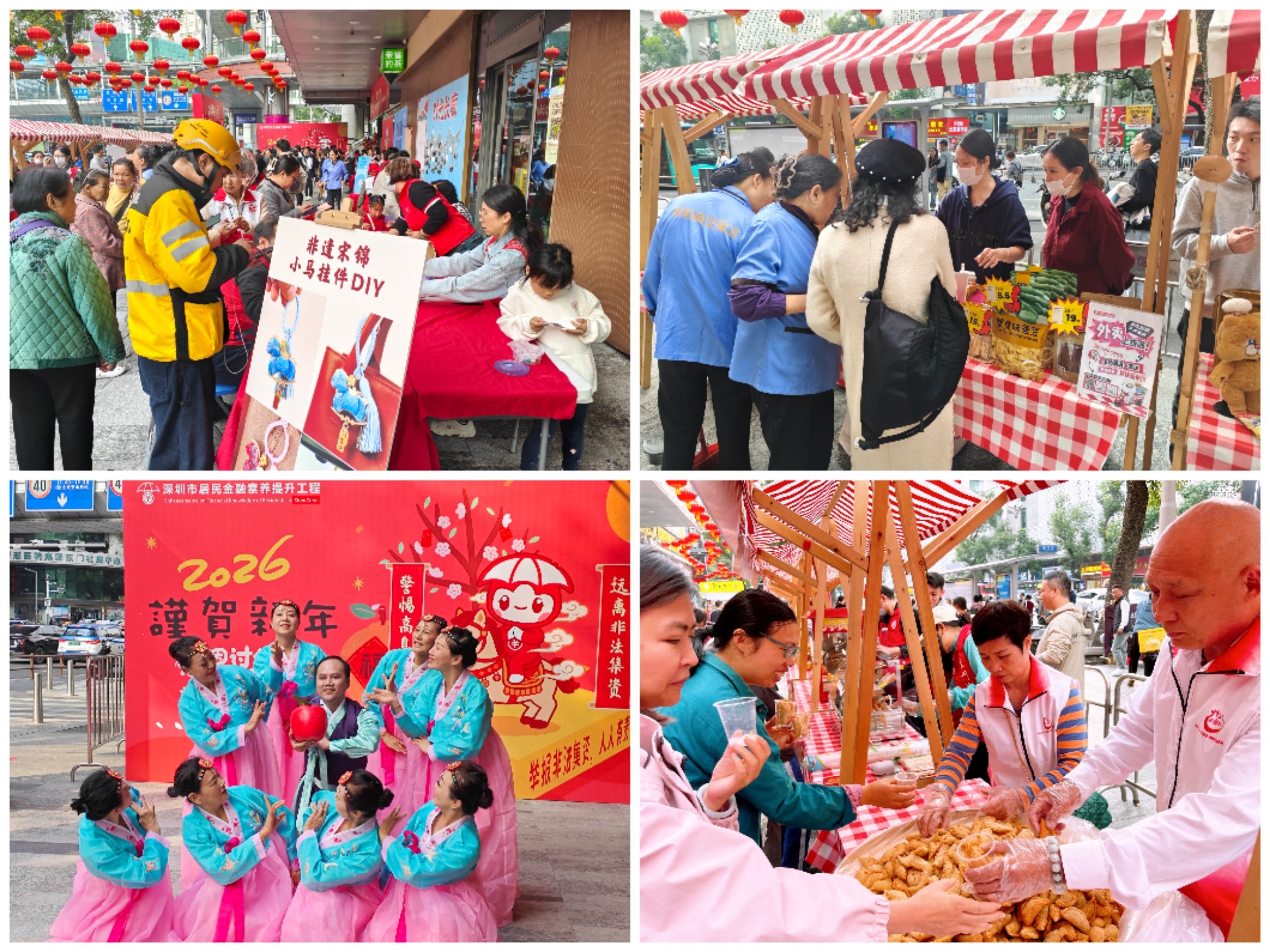 互动游园会中,非遗宋锦小马挂件DIY体验,让居民感受中华优秀传统文化魅力;信和东门不夜天、深圳市居民金融素养提升工程、南粤家政基层服务站、亚朵酒店等企业的助阵,展现了党建引领下社商联动、共赢发展的活力。美食分享区更是温情满满,传统小食油饺、爆米花、烤肠、杨枝甘露与粒上皇、珍珠大将军、好特卖、护溪河等商家试吃相得益彰,志愿者忙碌其中,维持秩序、分发食物,让居民在品尝美味中感受社区大家庭的温暖。