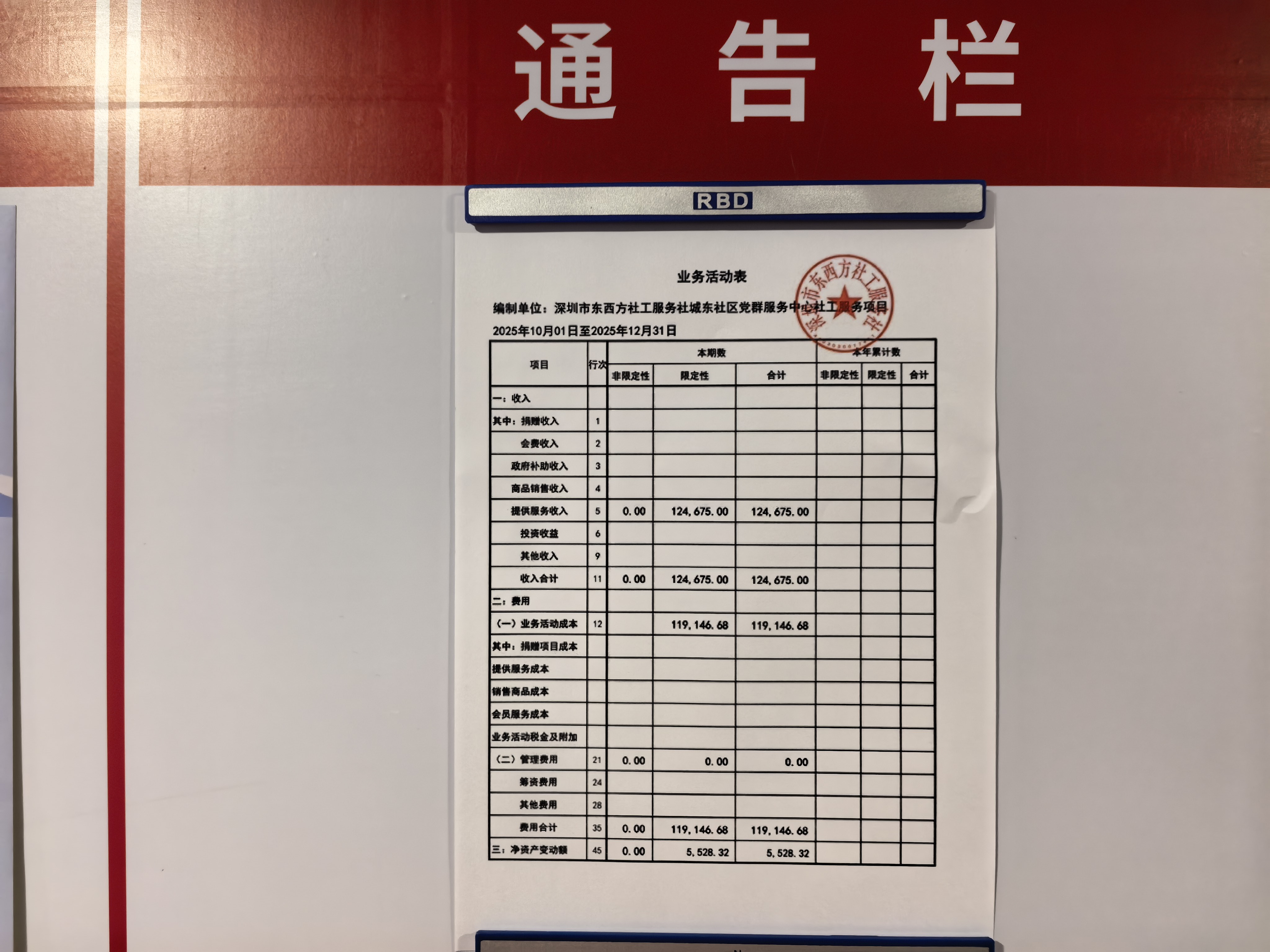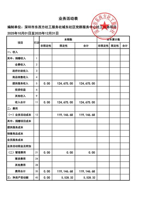 城东社区党群服务中心2025年第四季度财务公示