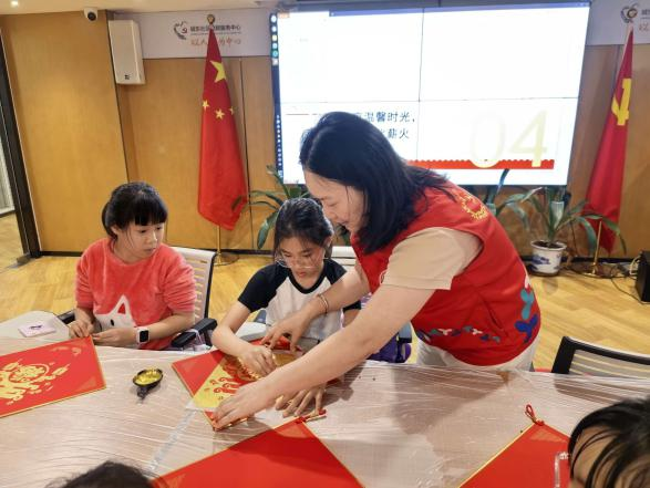 随后,社工带领大家认识非遗拓印技艺,讲解从碑刻到纸墨的文化传承,并通过经典作品视频,让大家直观感受拓印艺术的独特美学。在动手实践环节,同学们跟随专业老师,一步步学习福字拓印的完整流程,认真完成每一个操作,亲手创作出带有专属心意的福字作品,将新春祝福与非遗文化融为一体。