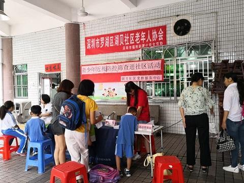 2018年10月15日下午,湖贝社区党群服务中心联合爱尔眼科医院,在社区三角区开展了青少年近视防控筛查进社区活动,共计36名社区青少年参与到活动中来。