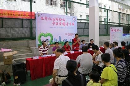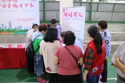 2018年10月16日下午,湖贝社区网格联合公安、城管、安监等部门在湖贝新村篮球场二楼开展了“网格进社区”为主题的宣传活动。