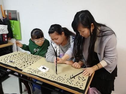 首先,黄老师带领组员认识了五种基本字体及区别:篆体、楷体、隶书、行书、草书…接着,组员从基本功开始练习,第一步:坐姿,老师示范写书法时正确的坐姿。第二步:握笔,手指握在什么位置,如何拿毛笔,如何用力等。第三步:老师示范如何写点、斜点笔画,组员根据黄老师讲解的书写技巧,在纸上一笔一笔地认真练习,老师及社工从旁进行指导,并纠正组员的握笔姿势及书写技巧。活动结束后,组员表示第一次学习书法,回家一定会好好练习,以后写一手漂漂亮亮的毛笔字。