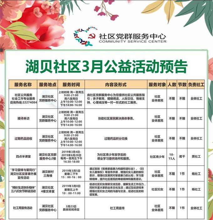 湖贝社区党群服务中心3月份活动预告