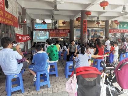 为丰富居民群众文化生活,满足社区居民的精神文化需求,2019年6月21日下午,湖贝社区党群服务中心在社区三角区举办了“小银幕·大世界”社区观影活动,许多家长及小朋友前来观看科幻电影——《流浪地球》.